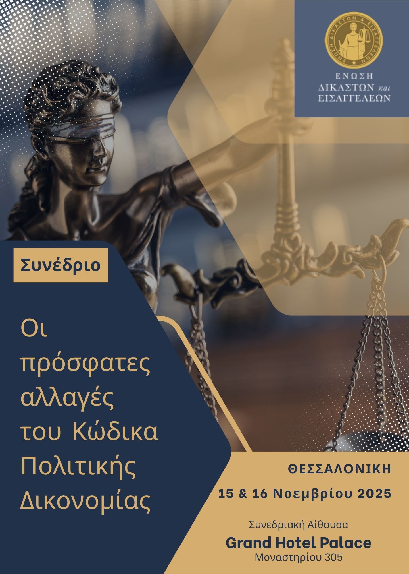 - Η Ένωση Δικαστών και Εισαγγελέων διοργανώνει συνέδριο την 15η και 16η Νοεμβρίου 2025 στο GRAND HOTEL PALACE στη Θεσσαλονίκη