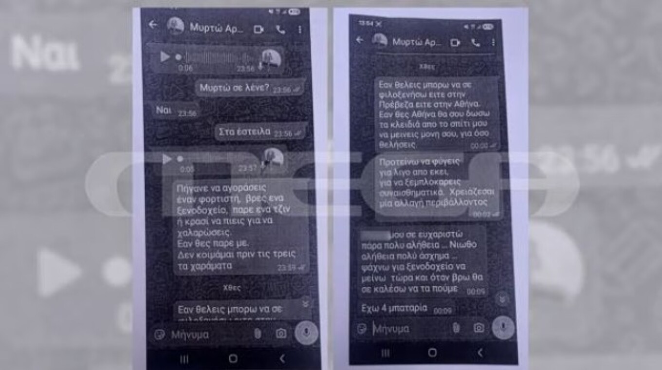 Μάλιστα, στη συνέχεια, ο 66χρονος προσφέρεται να φιλοξενήσει την Μυρτώ σε περίπτωση που βρεθεί στην Πρέβεζα ή την Αθήνα.