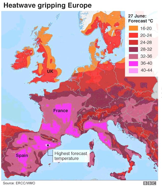 Σε Ισπανία, Ιταλία και Γαλλία, όπου το πρόβλημα είναι πιο οξύ, οι τοπικές Αρχές έχουν προχωρήσει στη λήψη έκτακτων μέτρων για την αντιμετώπιση του καύσωνα. Όμως, πολύ υψηλές θερμοκρασίες καταγράφονται επίσης στη Γερμανία, την Τσεχία και την Πολωνία.