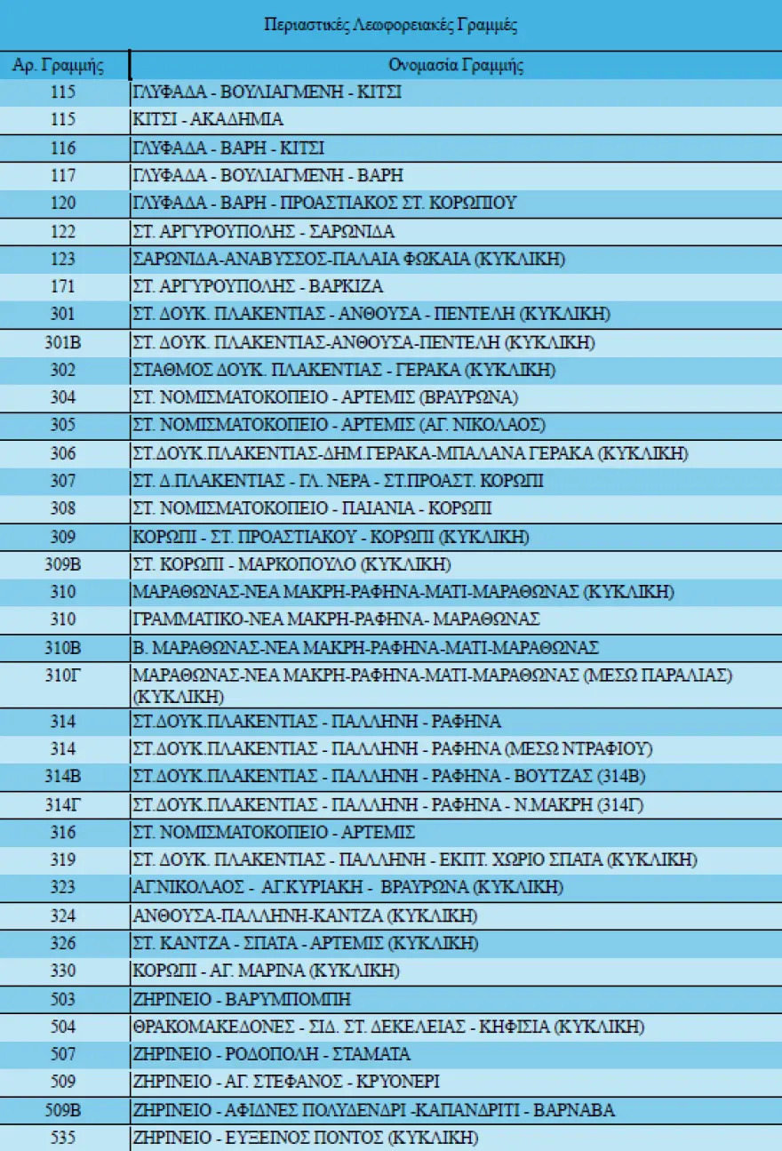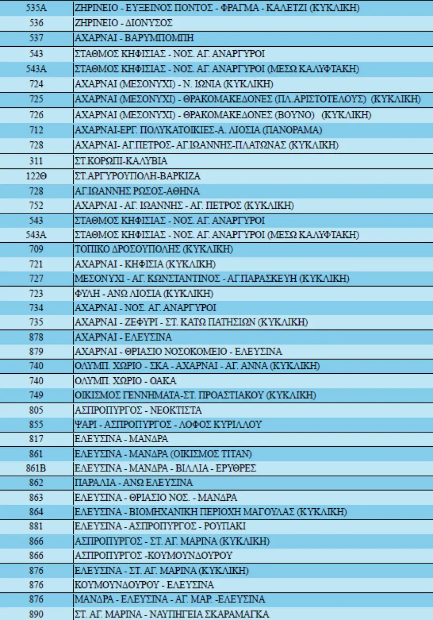 Όμως, στις λεωφορειακές γραμμές που ακολουθούν όλα τα δρομολόγια θα πραγματοποηθούν κανονικά: