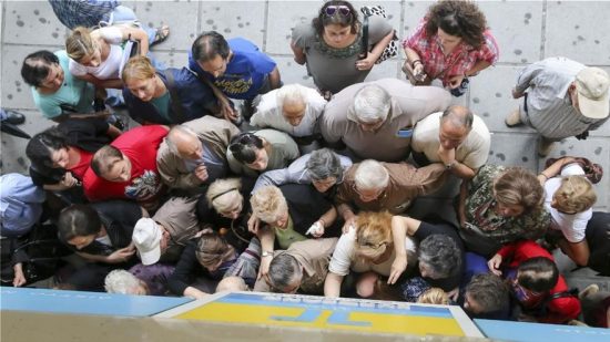 Στα σχόλια αυτά η ΝΔ απάντησε με 15 λέξεις και μία φωτογραφία πολιτών να συνωστίζονται σε ΑΤΜ μετά την επιβολή των capital controls: «Ιούλιος 2015: Οι Έλληνες δε θέλουν να ξαναζήσουν τις «επιτυχίες» του «μαγαζιού» του κ. Τσίπρα.»