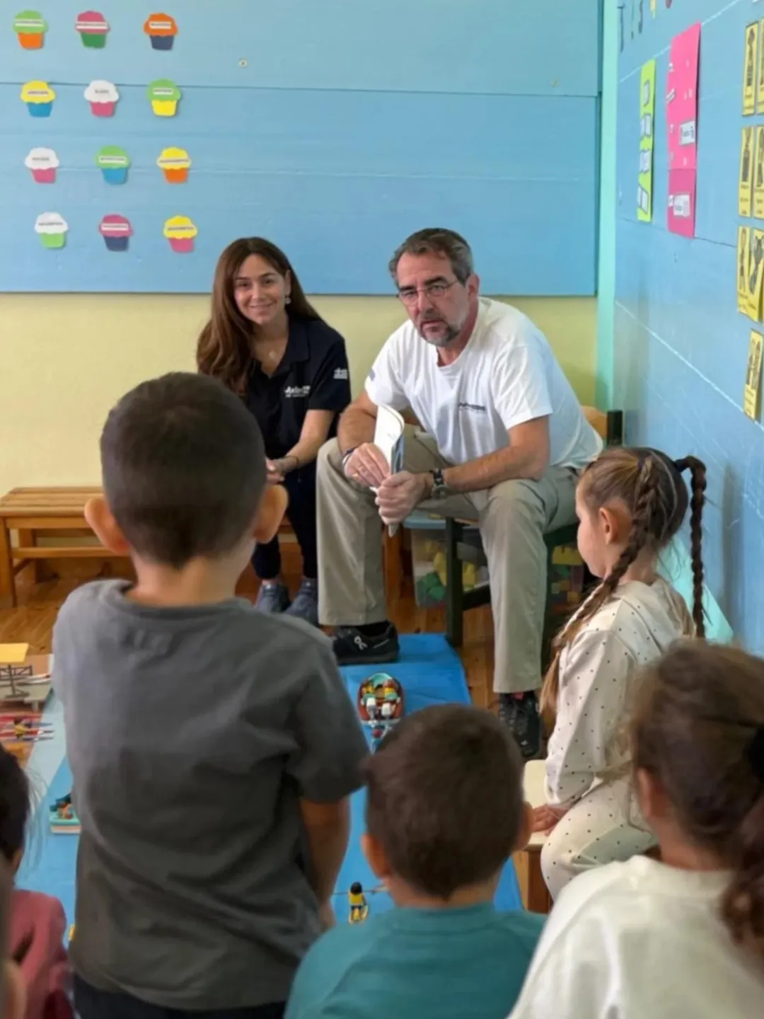 Σε μία φωτογραφία, ο Νικόλαος Ντε Γκρες βρίσκεται έξω από το Α’ Δημοτικό Σχολείο στους Οθωνούς, ενώ σε άλλη φωτογραφία τον βλέπουμε να συνομιλεί με τους μικρούς μαθητές.