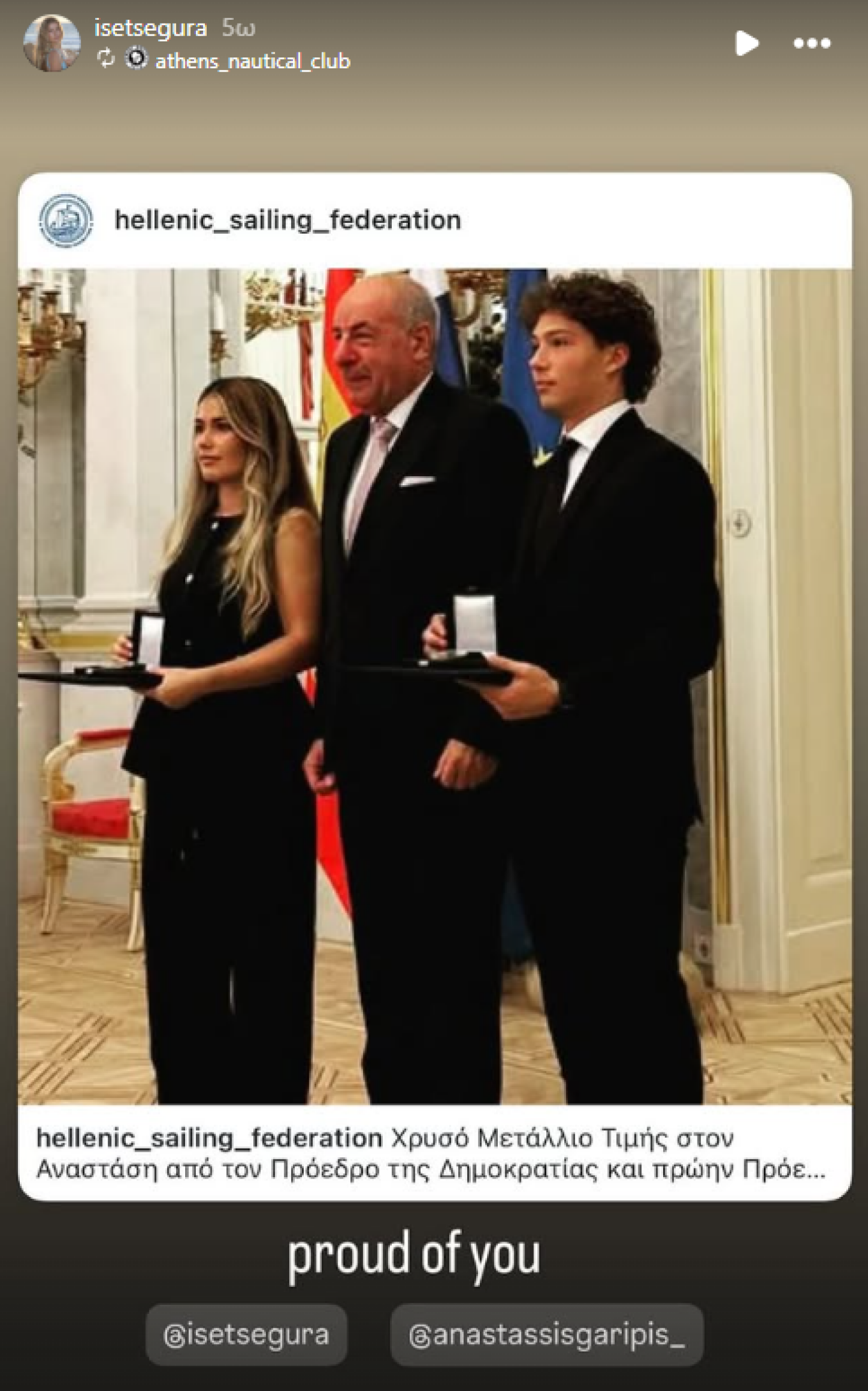 «Αξιότιμε Πρόεδρε της Δημοκρατίας, θα ήθελα να σας ευχαριστήσω από τα βάθη της καρδιάς μου για αυτή την τιμή και τη στιγμή που θα θυμάμαι για πάντα. Δεν περίμενα ποτέ πως ένας Πρόεδρος της Δημοκρατίας, θα μου απονείμει ένα μετάλλιο τιμής γιατί μια ημέρα προπόνησής μου στη θάλασσα, έκανα αυτό που υπαγορεύεται από την ίδια την ανθρώπινη υπόσταση: βοήθησα δύο ανθρώπους σε ανάγκη.