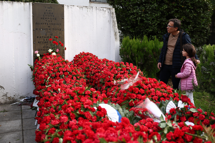 Με σύμμαχο τον καλό καιρό, οικογένειες με παιδιά, εκπρόσωποι κομμάτων, φορέων και συλλόγων προσέρχονται από το πρωί στο ιστορικό κτιριακό συγκρότημα του Πολυτεχνείου στην Πατησίων, για να αποτίσουν φόρο τιμής στους φοιτητές που εξεγέρθηκαν τον Νοέμβριο του 1973.
