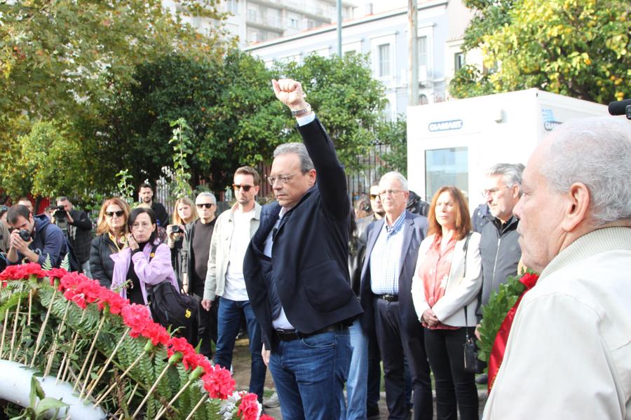 Μέχρι το μεσημέρι, στεφάνι είχαν καταθέσει εκπρόσωποι κομμάτων, φορέων και συλλόγων, μεταξύ των οποίων ο πρόεδρος του ΣΥΡΙΖΑ, Σωκράτης Φάμελλος και η πρόεδρος της Πλεύσης Ελευθερίας, Ζωή Κωνσταντοπούλου, η ΑΔΕΔΥ, η ΠΟΕ-ΟΤΑ και η ΔΟΕ.