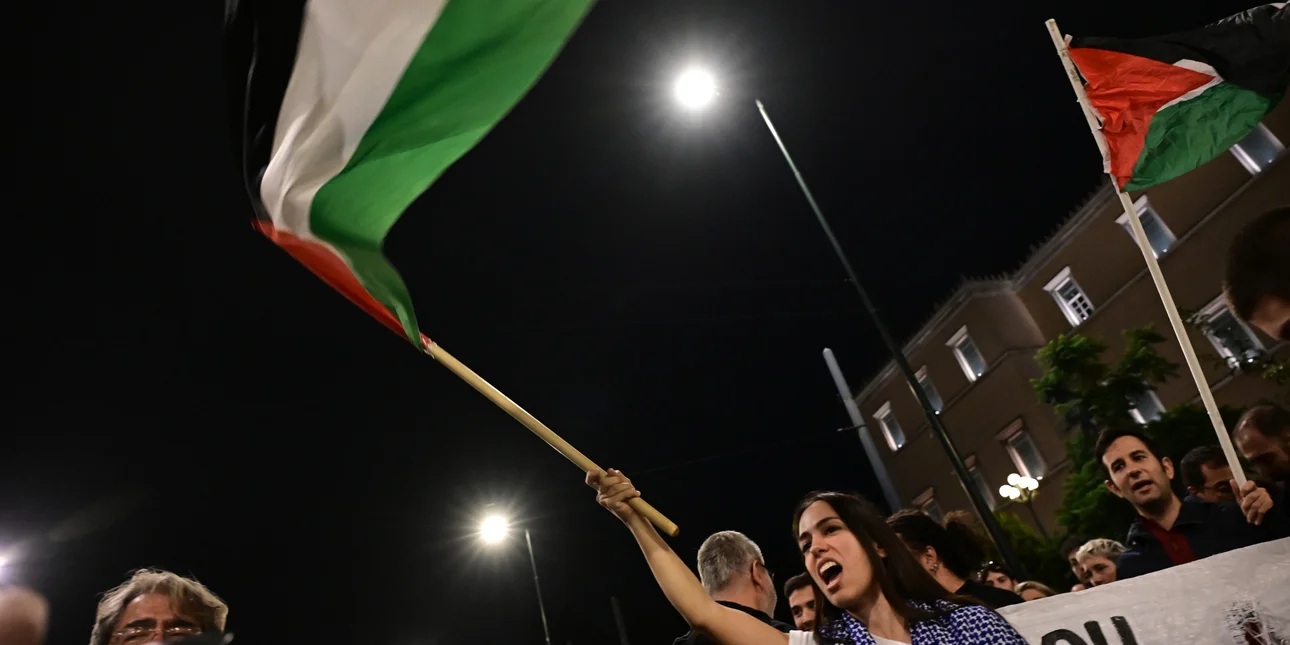 Συγκέντρωση διαμαρτυρίας για την αναχαίτιση του στολίσκου για τη Γάζα, πραγματοποιούν αυτήν την ώρα έξω από το Υπουργείο Εξωτερικών στη Βασιλίσσης Σοφίας η οργάνωση March to Gaza Greece.