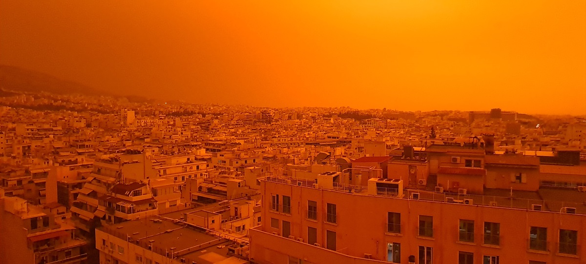 Μια εικόνα που θυμίζει περισσότερο Αφρική προκάλεσε η εισβολή του κύματος αφρικανικής σκόνης στην Αθήνα, το απόγευμα της Τρίτης.