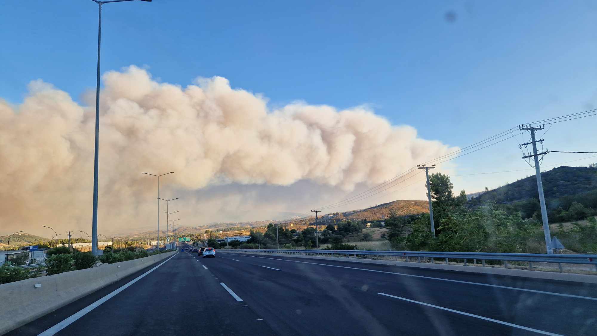 Οι καπνοί από τη φωτιά έχουν καλύψει το μεγαλύτερο μέρος του ουρανού της Αττικής, φτάνοντας μέχρι και τον Πόρο.