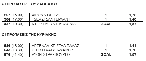 Δύο φαβορί και 1 Goal ξεχώρισα και από το αυριανό κουπόνι. Η Άρσεναλ ανέβηκε στην κορυφή της βαθμολογίας και θέλει να παραμείνει. Πιστεύω ότι θα κερδίσει την Κρίσταλ Πάλας η οποία δείχνει σημάδια κάμψης. Στα 2 τελευταία παιχνίδια της για το πρωτάθλημα ηττήθηκε με 2-1 από την Έβερτον και παραχώρησε ισοπαλία με 3-3 στην Μπόρνμουθ. Την Πέμπτη γνώρισε την ήττα με 0-1 στο Conference League από την ΑΕΚ Λάρνακας. Ο «άσος» της Άρσεναλ είναι από τα στηρίγματα του κουπονιού.