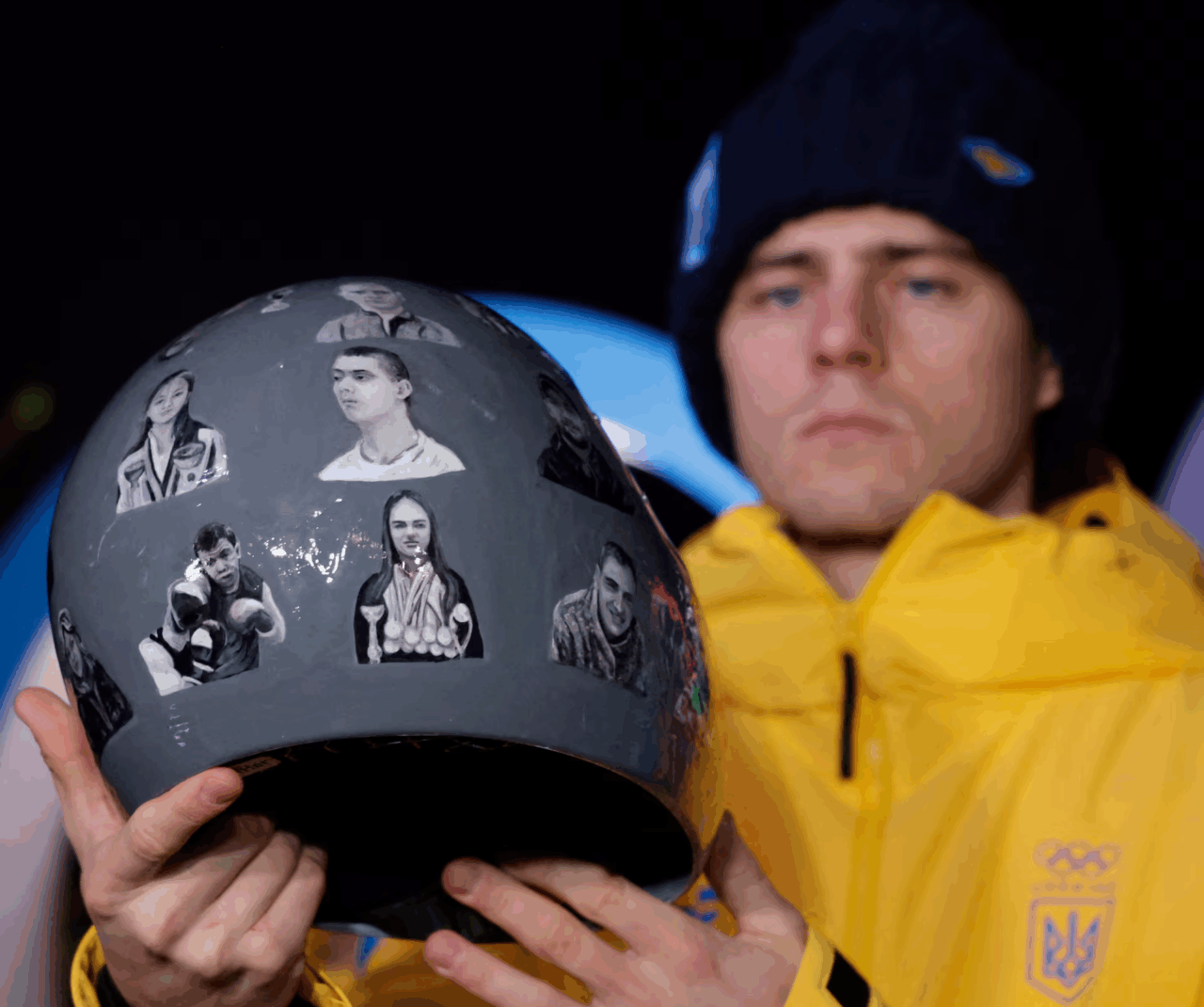 Το κράνος απεικονίζει διάφορους αθλητές που σκοτώθηκαν στον πόλεμο – μερικοί από τους οποίους ήταν φίλοι του Χεράσκεβιτς. Ο Χεράσκεβιτς δήλωσε στο Reuters ότι το κράνος απεικονίζει την έφηβη αρσιβαρίστρια Αλίνα Περεχούντοβα, τον πυγμάχο Πάβλο Ισένκο, τον παίκτη χόκεϊ επί πάγου Ολεξίι Λογκίνοφ, τον ηθοποιό και αθλητή Ιβάν Κονονένκο, τον δύτη και προπονητή Μίκιτα Κοζουμπένκο, τον σκοπευτή Ολεξίι Χαμπάροφ και τη χορεύτρια Ντάρια Κούρντελ.