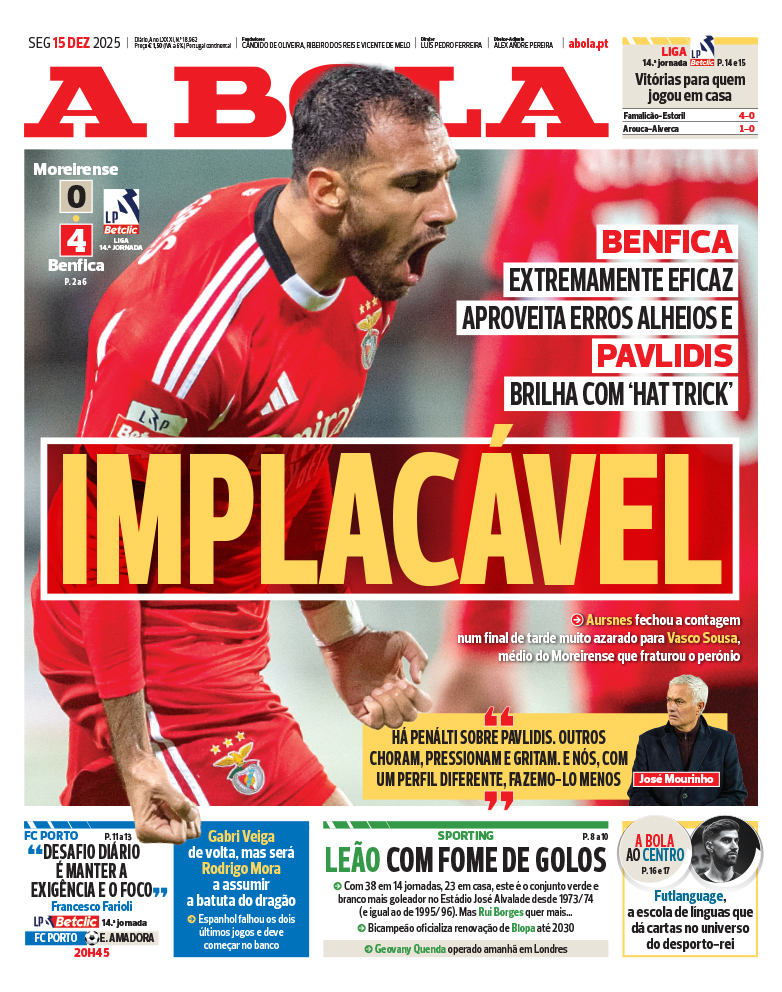 Η, δε, πορτογαλική «A Bola» τον αποκάλεσε «Αμείλικτο» και τον έβαλε στο πρωτοσέλιδο. Όχι για μια μεμονωμένη εμφάνιση, αλλά για μια διαδρομή που αποκτά πλέον χαρακτηριστικά εποχής. Ο Παυλίδης δεν είναι απλώς ο πρώτος σκόρερ. Είναι ο παίκτης γύρω από τον οποίο χτίζεται η επιθετική ταυτότητα της Μπενφίκα.