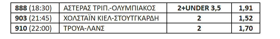 Αρκετά φαβορί έχει το σημερινό κουπόνι του στοιχήματος. Ξεχώρισα 3 «διπλά» από την Super League και τα Κύπελλα Γερμανίας και Γαλλίας.