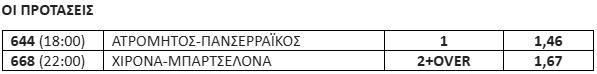 Η 21η αγωνιστική της Super League ολοκληρώνεται σήμερα με τον αγώνα Ατρόμητος-Πανσερραϊκός. Φαβορί για τη νίκη είναι η ομάδα του Περιστερίου. Προέρχεται από το «διπλό» (0-1) στο ματς με την Κηφισιά, που την απομάκρυνε από τις επικίνδυνες θέσεις. Ο Πανσερραϊκός είναι ουραγός με μόλις 8 βαθμούς. Έχει 13 ήττες στα 14 τελευταία παιχνίδια και λογικά δεν ελπίζει να αποφύγει τον υποβιβασμό. Είναι ευκαιρία για τον Ατρόμητο να πάρει τη νίκη. Ποντάρω στον «άσο».
