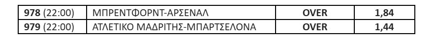 Το δεύτερο Over είναι από το Κύπελλο Ισπανίας, στον ημιτελικό της Ατλέτικο Μαδρίτης με την Μπαρτσελόνα. Είναι ο πρώτος αγώνας αυτός και θα ακολουθήσει ρεβάνς στη Βαρκελώνη. Η Ατλέτικο θέλει να εκμεταλλευτεί την έδρα της για να πάρει προβάδισμα για την πρόκριση.