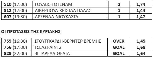Αρκετά είναι τα φαβορί που υπάρχουν στα παιχνίδια του Σαββατοκύριακου. Ξεχώρισα 3 από την Premier League.