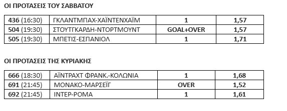 Στη σέντρα ξανά όλα τα πρωταθλήματα και στα ύψη το στοιχηματικό ενδιαφέρον. Ξεχώρισα 2 τριάδες με φαβορί, Goal και Over για το Σαββατοκύριακο.