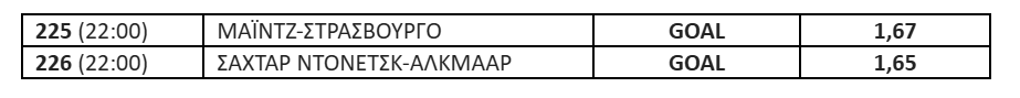 Χωρίς φαβορί είναι το ματς της Σαχτάρ Ντόνετσκ με την Άλκμααρ, το οποίο γίνεται σε ουδέτερο γήπεδο, στην Κρακοβία της Πολωνίας. Η Σαχτάρ έφερε 2 Goal και Over, στην φάση των «16», στα ματς με τη Λεχ Πόζναν. Κέρδισε με 1-3 στο πρώτο παιχνίδι και ηττήθηκε με 1-2 στη ρεβάνς.