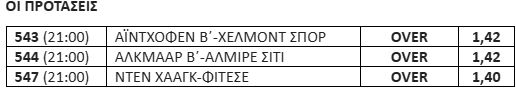 Οι σημερινές επιλογές είναι από αυτό το πρωτάθλημα με 3 Over. Και στα 3 ματς είναι πιθανό και το Goal.