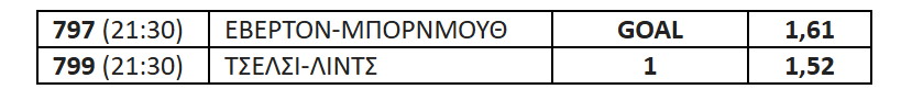 Αμφίρροπο είναι το παιχνίδι της Έβερτον με την Μπόρτνμουθ. Το δείχνουν και οι αποδόσεις. Το πιθανότερο είναι να σκοράρουν και οι 2 ομάδες. Στην προηγούμενη αγωνιστική η Έβερτον κέρδισε με 1-2 την Φούλαμ και η Μπόρνμουθ ήρθε ισόπαλη 1-1 με την Άστον Βίλα. Μετράνε από 5 Goal στις 6 τελευταίες αγωνιστικές. Ποντάρω στο Goal.