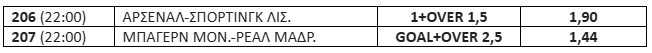 Η Σπόρτινγκ χάνει σημαντικό μέρος από τη δυναμικότητά της μακριά από τη Λισαβόνα. Χρειάζεται γκολ για να διεκδικήσει την πρόκριση. Δύσκολα πάντως θα καταφέρει να κάνει την ανατροπή. Πιστεύω ότι η Άρσεναλ θα πάρει τη νίκη και για να ανεβάσω την απόδοση ποντάρω στον «άσο» της μαζί με το Over 1,5.