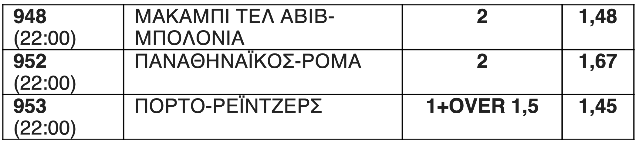 Η Πόρτο διεκδικεί την είσοδό της στην οχτάδα. Βρίσκεται στην 9η θέση και μένει εκτός από την 8η Μπέτις η οποία έχει καλύτερο συντελεστή τερμάτων (+5 έναντι +4 της Πόρτο). Θέλει τη νίκη κόντρα στη Ρέιντζερς που έχει αποκλειστεί. Ο «άσος» της είναι χαμηλά και για να ανεβάσω την απόδοση τον συνδυάζω με το Over 1,5.