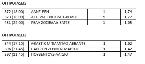 Οι άλλες 2 επιλογές είναι από βραδινά παιχνίδια στη Γαλλία και την Ιταλία. Η Παρί Σεν Ζερμέν είναι φαβορί για τη νίκη στο ντέρμπι με την Μαρσέιγ. Θέλει να παραμείνει στην κορυφή και στην έδρα της δύσκολα θα χάσει βαθμούς.
