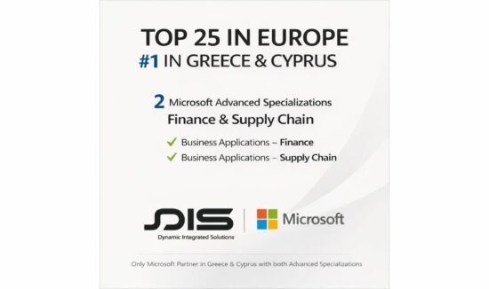 Η DIS είναι η μόνη εταιρεία σε Ελλάδα και Κύπρο στους Top 25 Microsoft Partners Ευρώπης με δύο Advanced Specializations σε Finance & Supply Chain