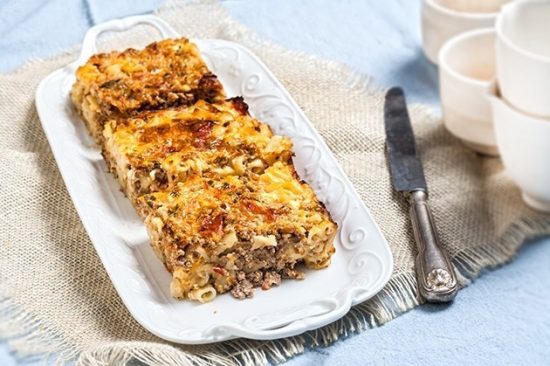 Συνταγή για εύκολο σουφλέ ζυμαρικών με τυριά και αλλαντικά στο φούρνο