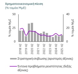 Το ποσοστό των επιχειρήσεων με έντονη έλλειψη ρευστότητας και εκείνων που βρίσκονται σε κατάσταση επιβίωσης παραμένει κοντά στο ιστορικό χαμηλό του 10%, υποδηλώνοντας σταθερές βάσεις αντοχής.