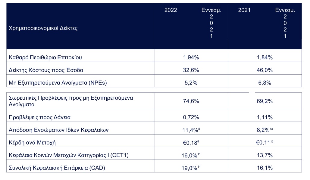 -Αύξηση οργανικών κερδών προ προβλέψεων κατά 30,6% έναντι του 2021
