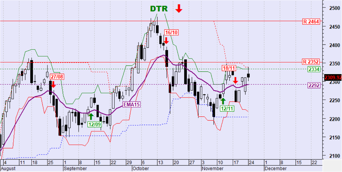 Ημερήσιο όριο αντιστροφής της βραχυπρόθεσμης τάσης σε ανοδική: 2334 μονάδες