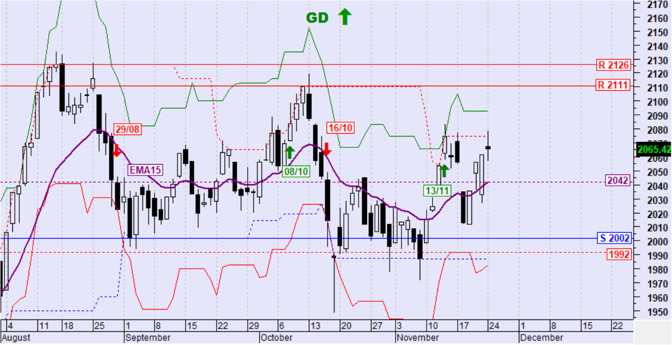 ο Εκθετικός Μέσος Όρος των 15 ημερών (ΕΜΑ15) στις 2042 μονάδες