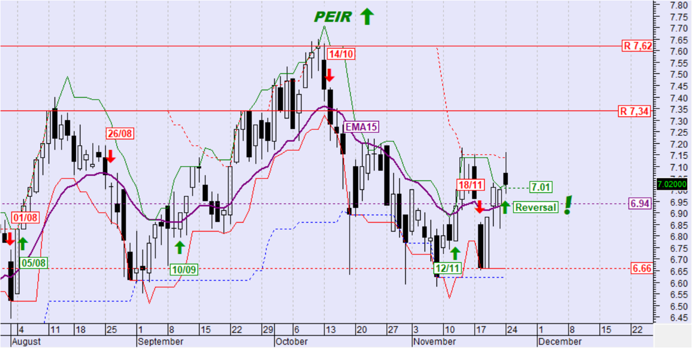 Βραχυπρόθεσμη τάση: αντιστράφηκε σε ανοδική με την υπέρβαση των 7.01€ στο κλείσιμο