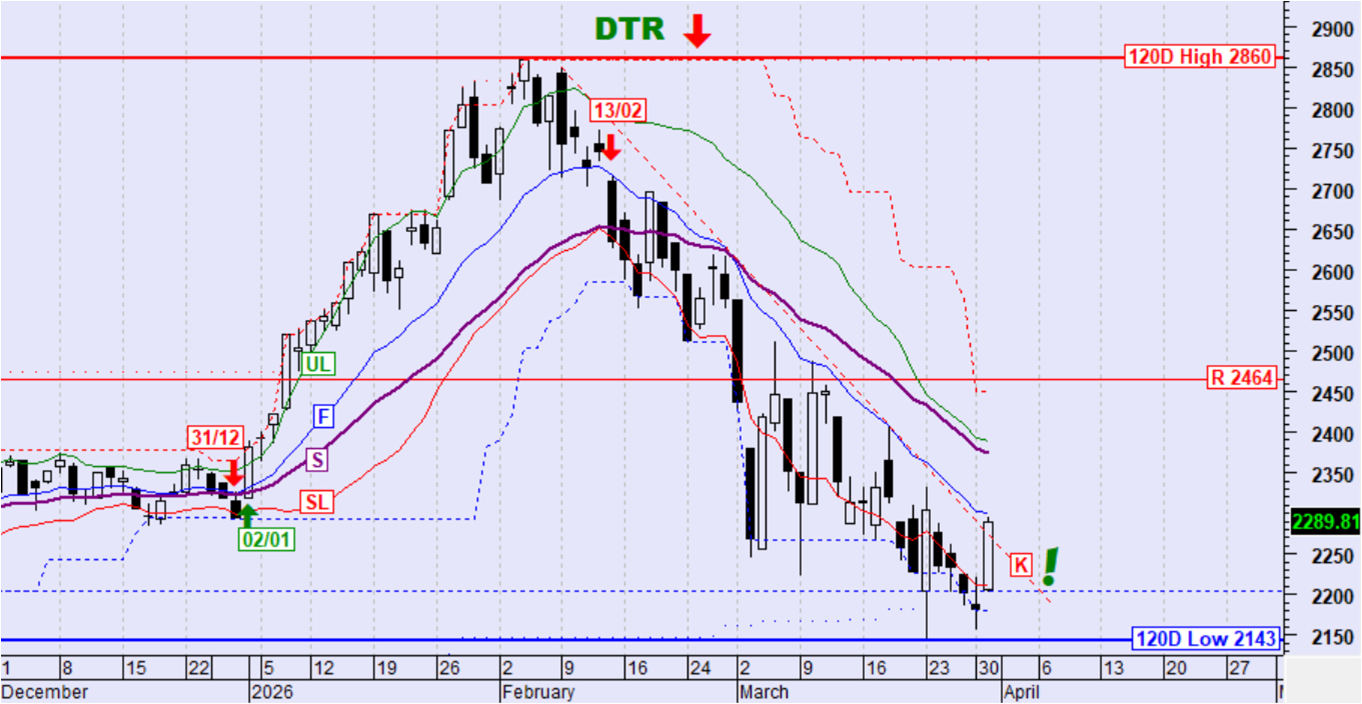 Ο ΓΔ αντέδρασε έντονα ανοδικά μετά την προσέγγιση – επαφή της στήριξης στις 2002 μονάδες χωρίς όμως κάποια σηματοδότηση. Η τεχνική εικόνα βελτιώνεται σε πρώτη φάση με υπέρβαση της αντίστασης στις 2110 μονάδες.