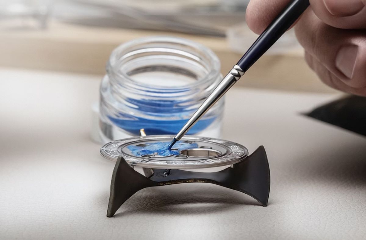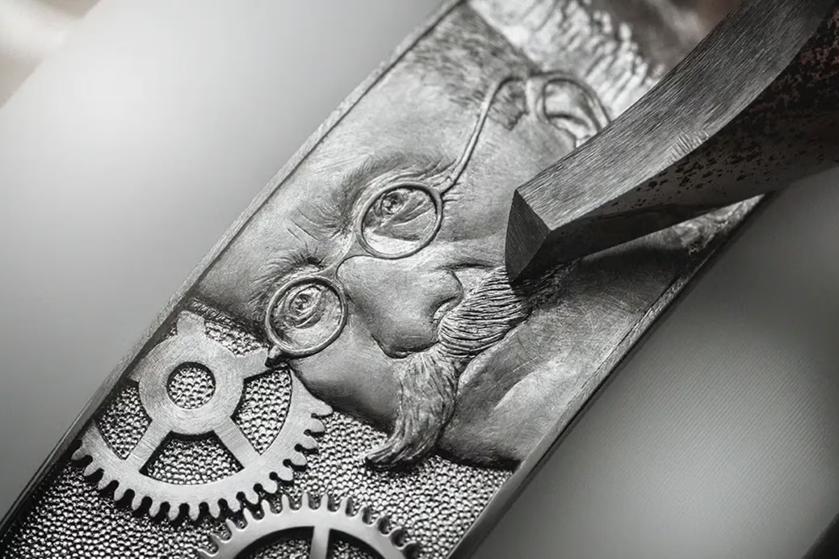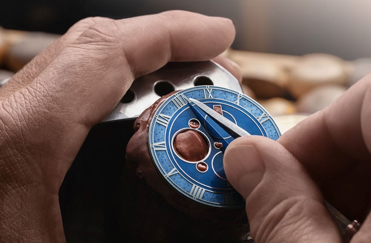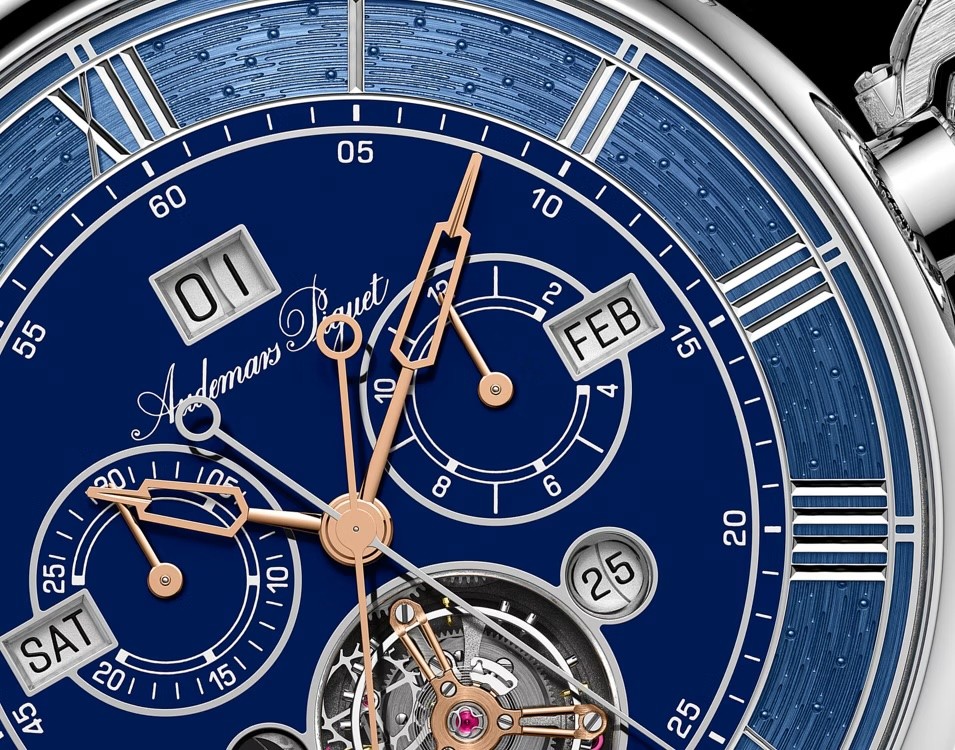 Η εξωτερική του εικόνα ακολουθεί την ίδια λογική ισορροπίας μεταξύ δεξιοτεχνίας και συγκράτησης. Η κάσα φέρει πλήρως χειροποίητη χάραξη με αναφορές στους ιδρυτές του οίκου, πλαισιώνοντας ένα κύριο καντράν από λευκό χρυσό 18 καρατίων με ημιδιαφανές μπλε grand feu enamel και αιωρούμενους ρωμαϊκούς αριθμούς.